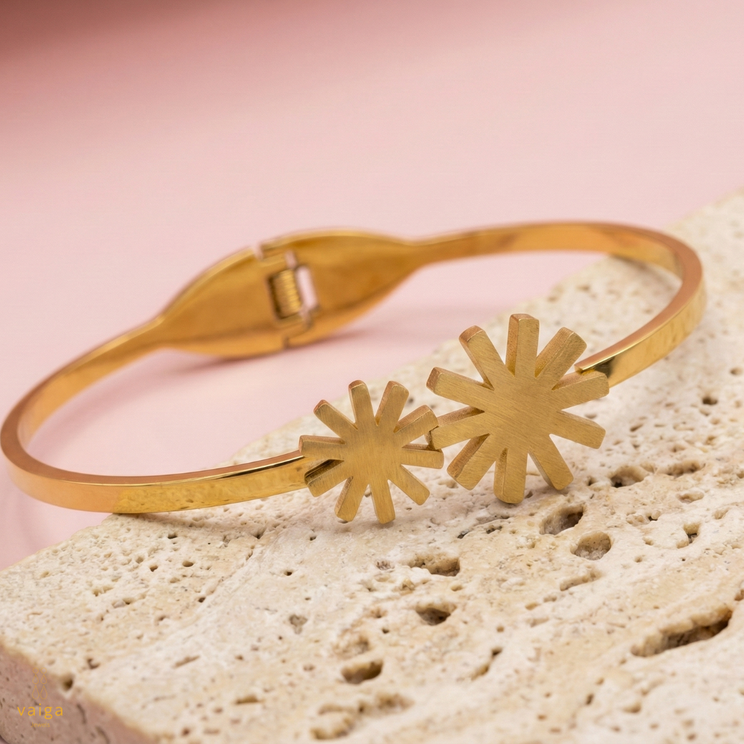Twin Starburst Gold Cuff Bracelet | Modern Geometric Bangle | Vaiga Jewels